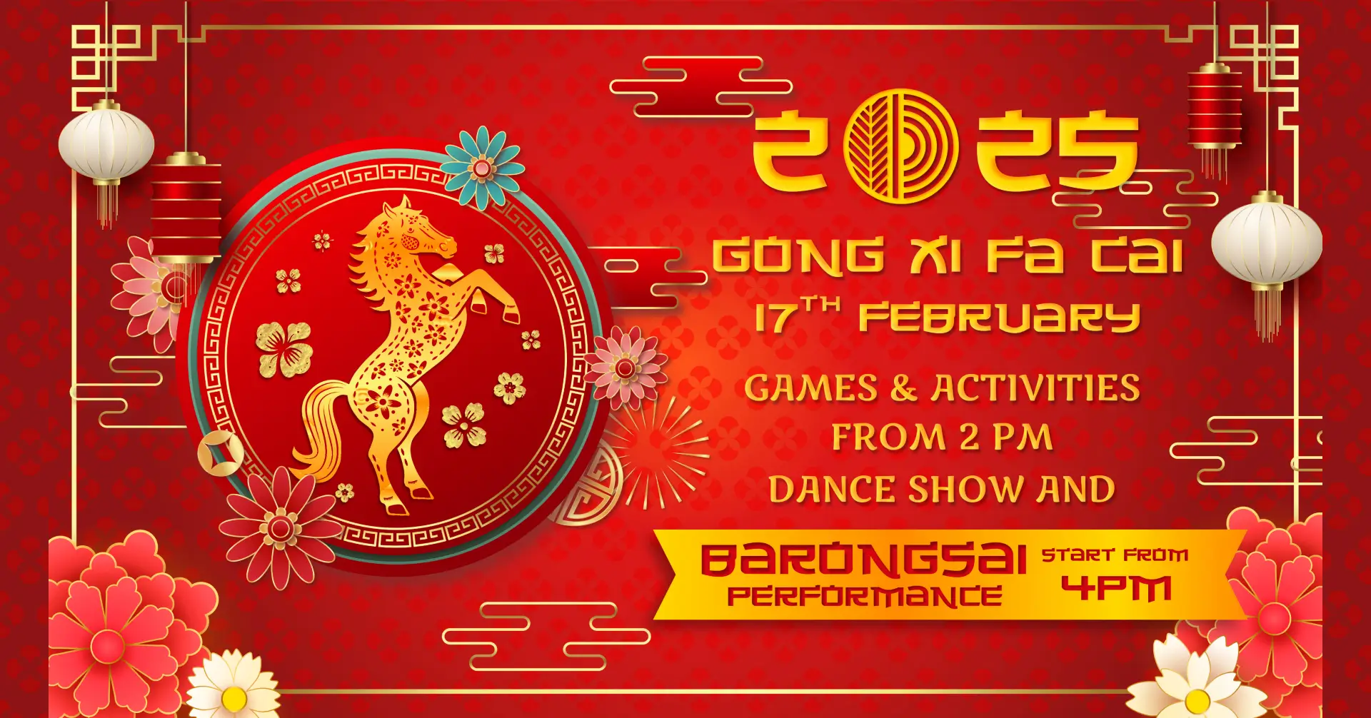 Join us on 17th February from 2pm for a festive afternoon filled with group games and activities, dance performances, and the much-loved Barongsai performance.
